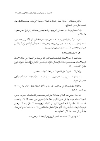 ااجتللاا للاخ نم ،ناطيشلا سواسو نم هللا نم ةيامحلا بلط اهنأب ةذاعتسلاا يزارلا رخفلا فرع