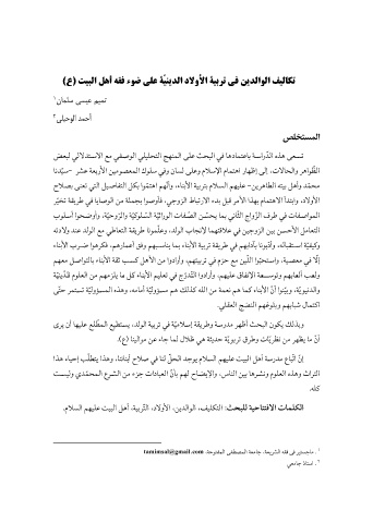 )ع( تيبلا لهأ هقف ءوض ىلع ةّينيدلا دلاولأا ةيبرت يف نيدلاولا فيلاكت