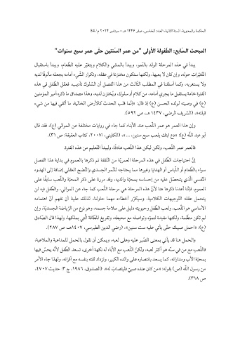 "    تاونس عبس رمع ىّتح نيتنّسلا رمع نم "  ىلولأا ةلوفّطلا :عباّسلا ثحبملا