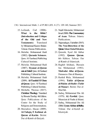 138 International Multi. J. of PURE LIFE. 8 (27): 109-140, Summer 2021