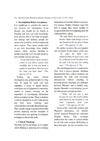 Qur'an, 49: 6). demonstrated how critical thinking can
