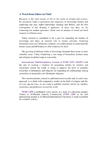 Thanks to Al-Mustafa Journals Commission, PURE LIFE as the first
