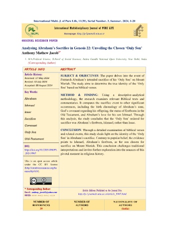 Received: 17 May 2024 Patriarch Abraham’s intended sacrifice of his ‘Only Son’ on Mount