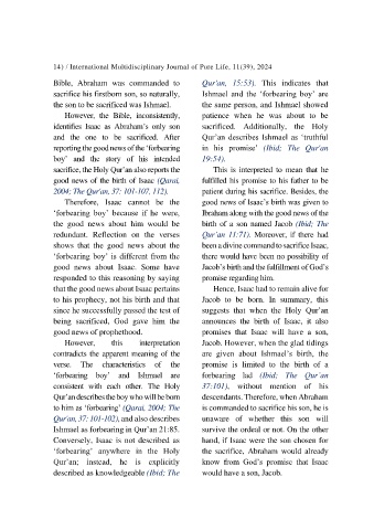sacrifice, the Holy Qur’an also reports the This is interpreted to mean that he