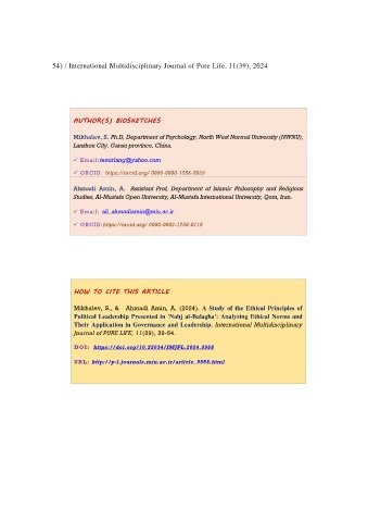 54 / International Multidisciplinary Journal of Pure Life, 11(39), 2024