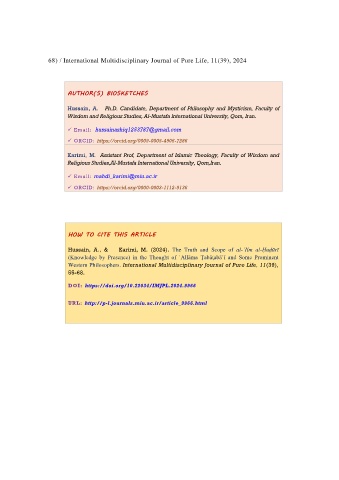 68 / International Multidisciplinary Journal of Pure Life, 11(39), 2024