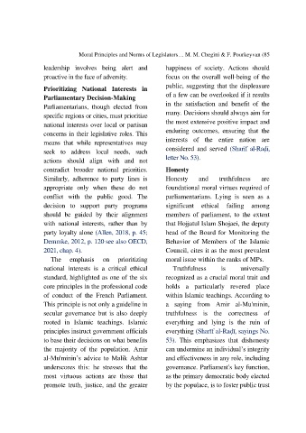 Moral Principles and Norms of Legislators… M. M. Chegini & F. Pourkeyvan (85