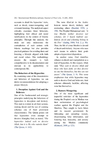accounts to detail the hypocrites’ traits, The term Khid‘ah in the Arabic