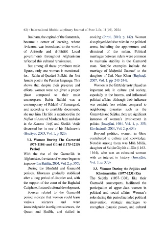 During the Sāmānīd and Ġaznavīd 3.3. Women During the Seljūks and