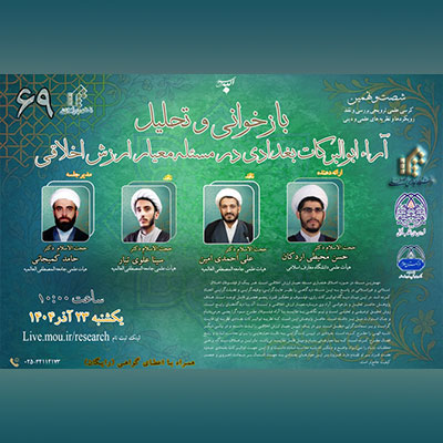 برنامه های هفته پژوهش: شصت و نهمین کرسی علمی ترویجی با عنوان: بازخوانی و تحلیل آراء ابوالبرکات بغدادی در مسئله معیار ارزش اخلاقی