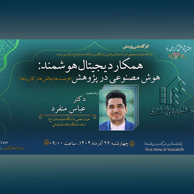 برنامه های هفته پژوهش: کارگاه علمی با عنوان: همکار دیجتال هوشمند؛ هوش مصنوعی در پژوهش(فرصت ها، چالش ها و کاربردها)