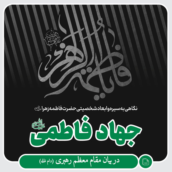 ابعاد جهاد فاطمیوقتی درباره عبادت و معنویت حضرت زهرا سخن میگوییم «بعضى خیال میکنند آن انسانى که مشغول عبادت است و یک عابد و متضرع و اهل دعا و ذکر است، نمیتواند یک انسان سیاسى باشد؛ یا بعضى خیال میکنند آن کسى که اهل سیاست است... نمیتواند اگر زن است، یک زن خانه باشد... خیال میکنند اینها با هم منافات دارد.» ۱۳۶۸/۹/۲۲ در حالیکه «فاطمهی زهرا این سه چیز را از هم جدا نکرد.» ۱۳۶۸/۹/۲۲ و اگر به زندگی ایشان نگاه کنیم، میبینیم «این زندگی از جهت جهاد و مبارزه و تلاش و کار انقلابی و صبر انقلابی و درس و فراگیری و آموزش به این و آن و سخنرانی و دفاع از نبوت و دفاع از امامت و دفاع از نظام اسلامی، یک دریای پهناوری از تلاش و مبارزه و کار است.» ۱۳۶۸/۱۰/۲۶ در ادامه به توضیح برخی از این ابعاد میپردازیم: