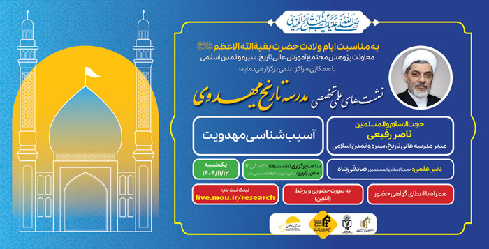 📌 به مناسبت ایام ولادت حضرت بقیة الله الأعظم عجل الله تعالی فرجه الشریف، معاونت پژوهش مجتمع آموزش عالی تاریخ، سیره و تمدن اسلامی با همکاری دانشگاه مجازی و سایر مراکز علمی، نشست های تخصصی مدرسه تاریخ مهدوی را برگزار می نماید.