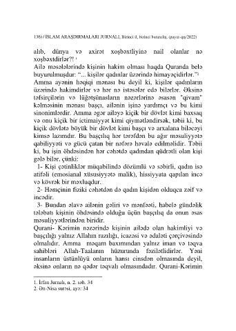 136) / İSLAM ARAŞDIRMALARI JURNALI Birinci il, birinci buraxılış, (payız-qış/2022)