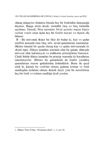 142) / İSLAM ARAŞDIRMALARI JURNALI Birinci il, birinci buraxılış, (payız-qış/2022)