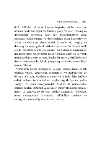 üzvləri əmin-amanlıq içində yaşayacaq və ailənin səmərəliliyi