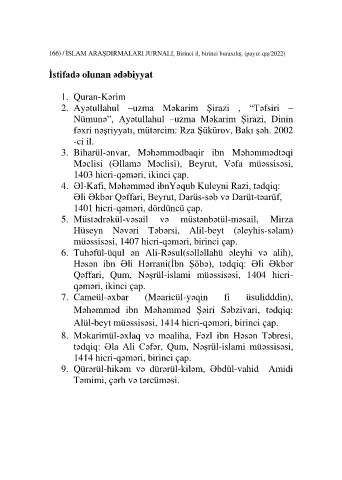 166) / İSLAM ARAŞDIRMALARI JURNALI Birinci il, birinci buraxılış, (payız-qış/2022)