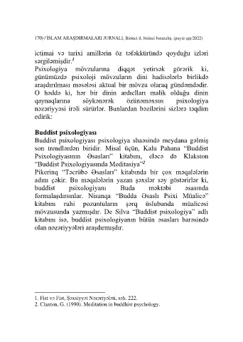 170) / İSLAM ARAŞDIRMALARI JURNALI Birinci il, birinci buraxılış, (payız-qış/2022)