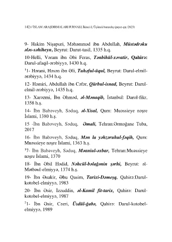 142) / İSLAM ARAŞDIRMALARI JURNALI, İkinci il, Üçüncü buraxılış (payız-qış /2023)