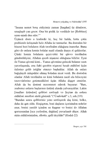 uzaqlaşıb yan gəzər. Ona bir pislik üz verdikdə isə Rəbbinə