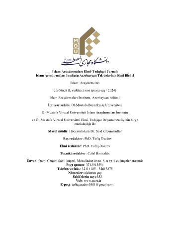 İmtiyaz sahibi: Əl-Mustafa Beynəlxalq Universiteti