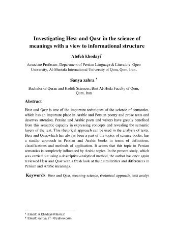 Keywords: Hesr and Qasr, meaning science, rhetorical approach, text analys