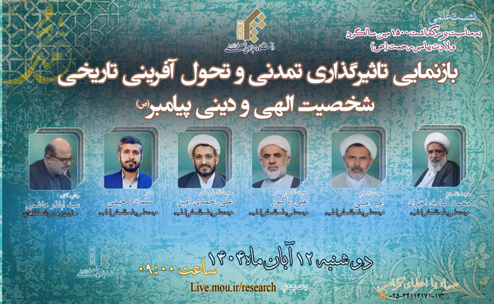 نشست علمی پژوهشی با عنوان: بازنمایی تأثیرگذاری تمدنی و تحول آفرینی تاریخی شخصیت الهی و دینی پیامبر(ص)