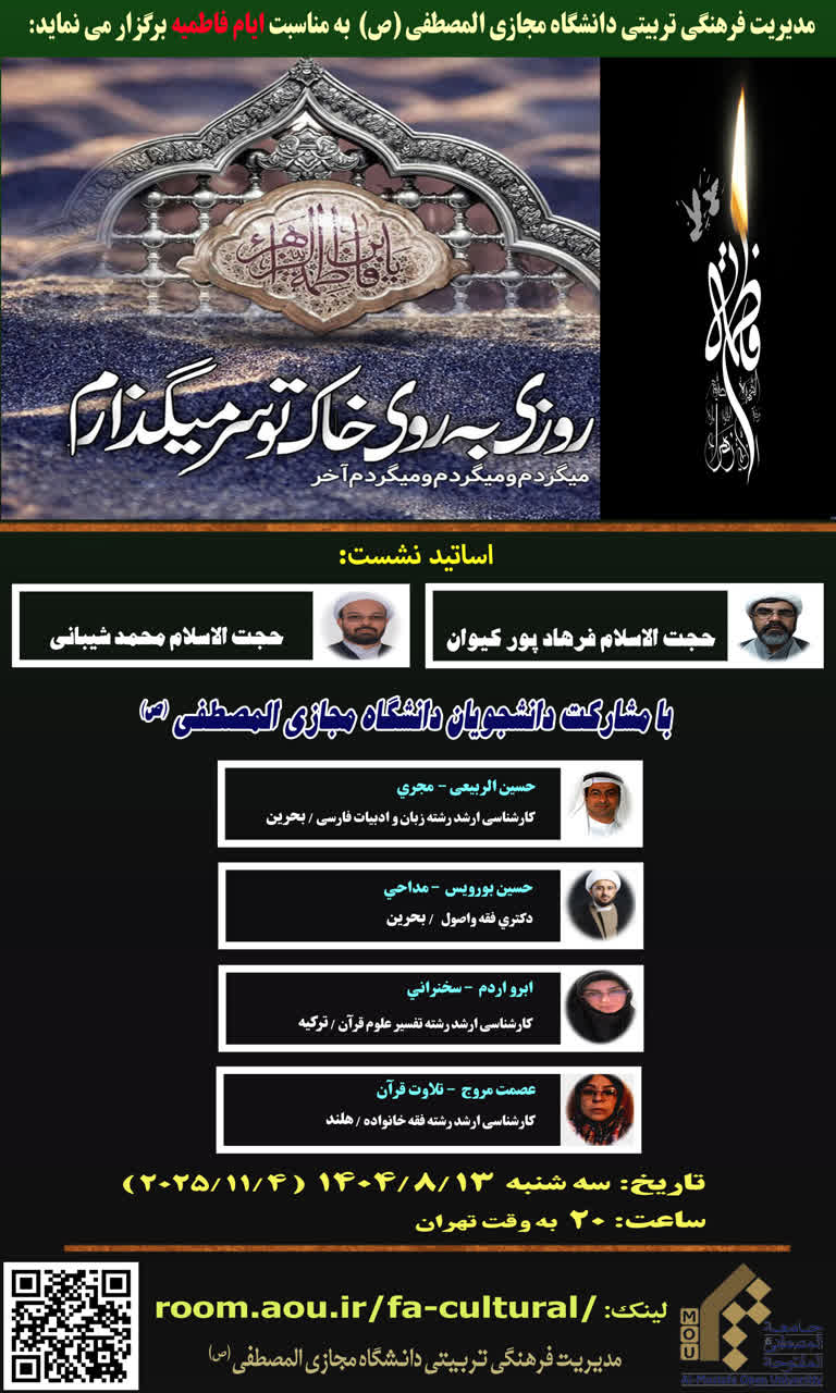 📌مديريت فرهنگی تربيتی دانشگاه مجازي المصطفی(ص) به مناسبت ایام فاطمیه برگزار مينمايد: