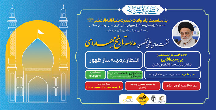 📌 به مناسبت ایام ولادت حضرت بقیة الله الأعظم عجل الله تعالی فرجه الشریف، معاونت پژوهش مجتمع آموزش عالی تاریخ، سیره و تمدن اسلامی با همکاری دانشگاه مجازی و سایر مراکز علمی، نشست های تخصصی مدرسه تاریخ مهدوی را برگزار می نماید.